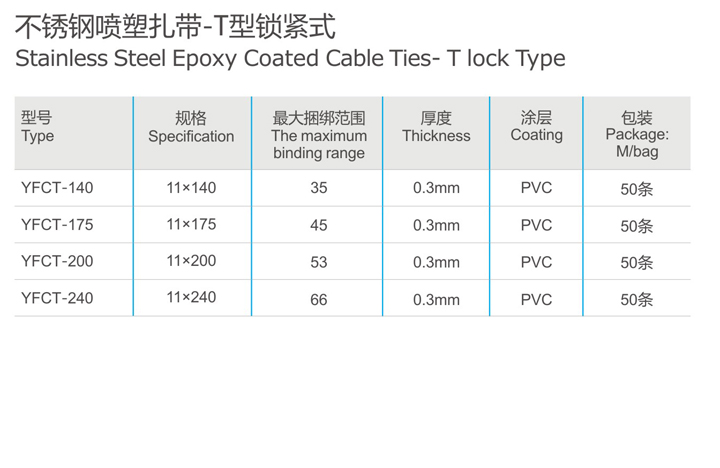 不銹鋼噴塑扎帶-T型鎖緊式
