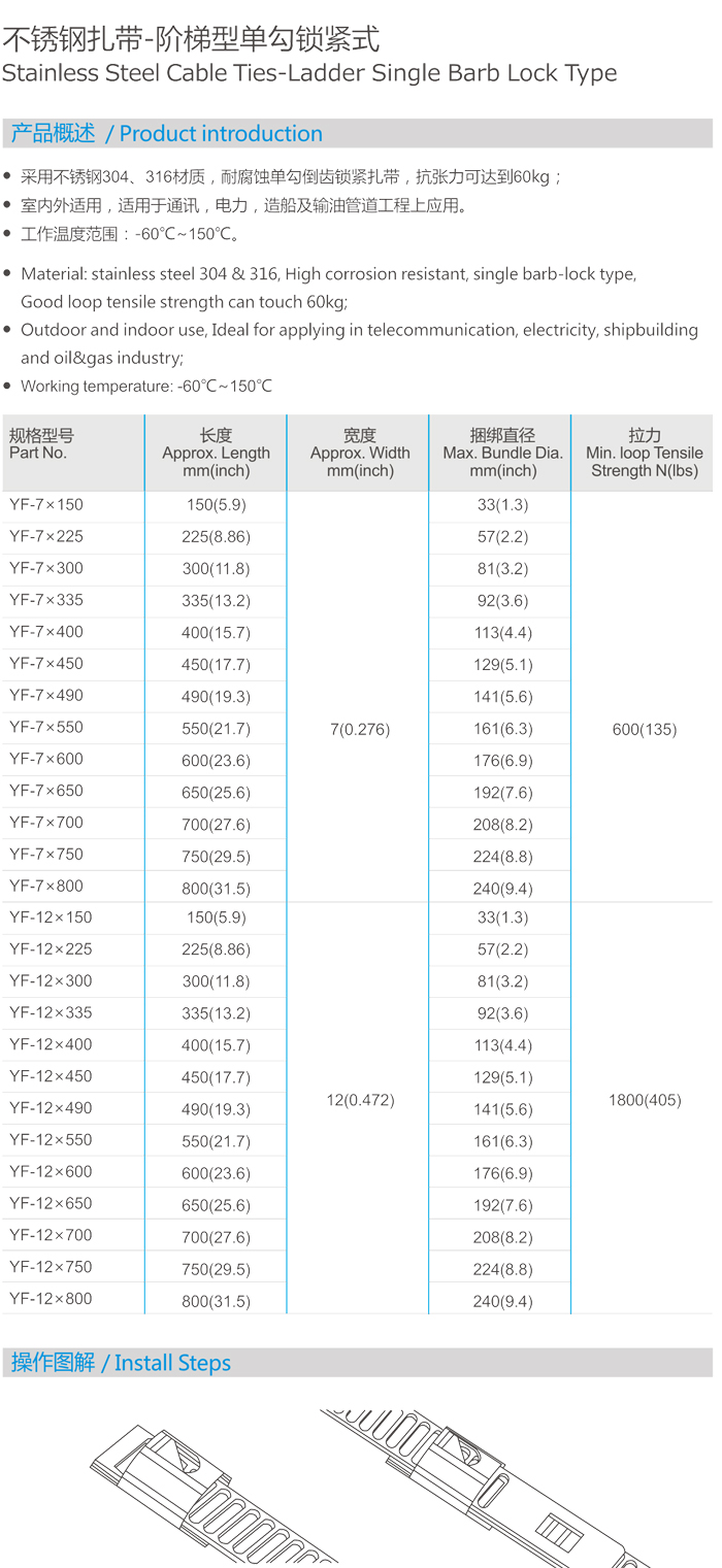 不銹鋼扎帶-階梯型單勾鎖緊式
