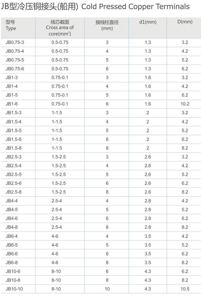 JB型冷壓銅接頭(船用)